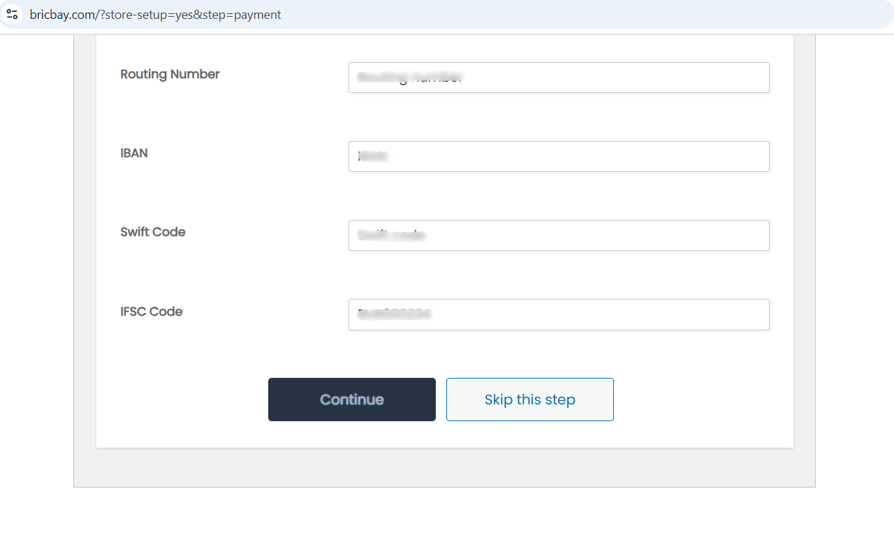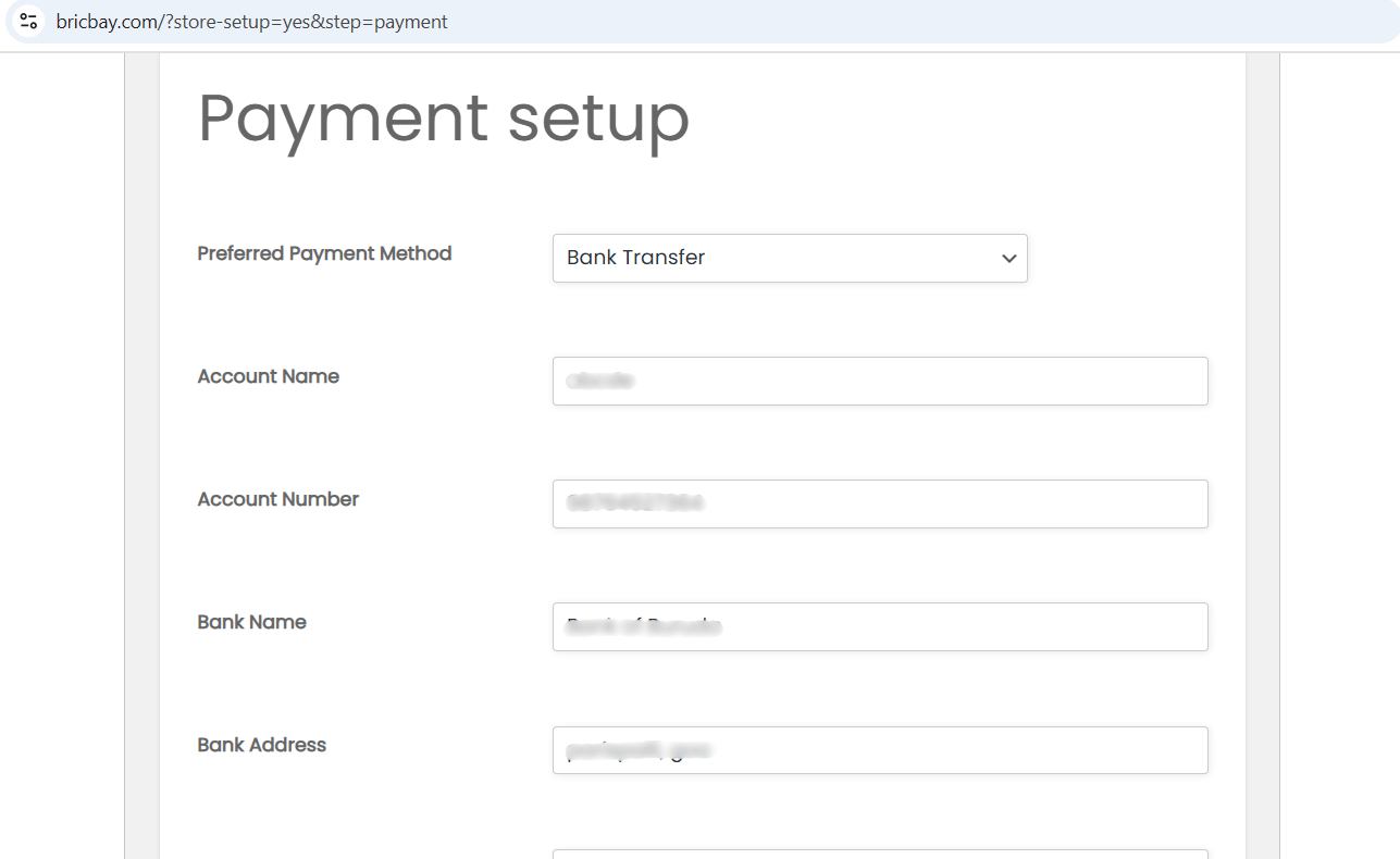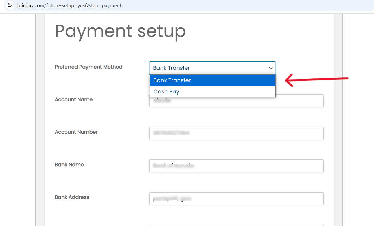 If you choose bank transfer enter your shop account details like Account Name, Account Number, Bank Name, Bank Address.
