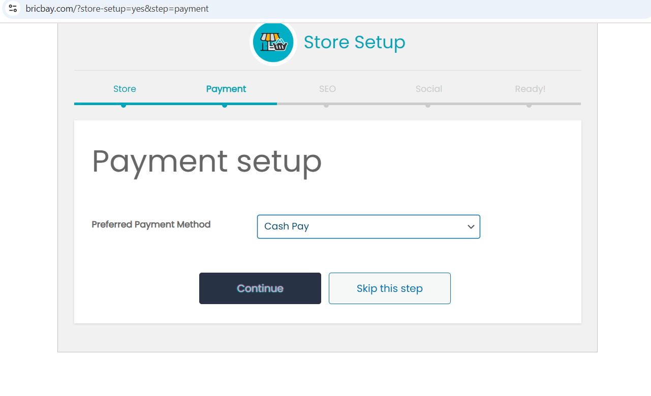 After choosing cash pay in preferred payment method you should see something like this directly and click on the continue button so the payment method is set.