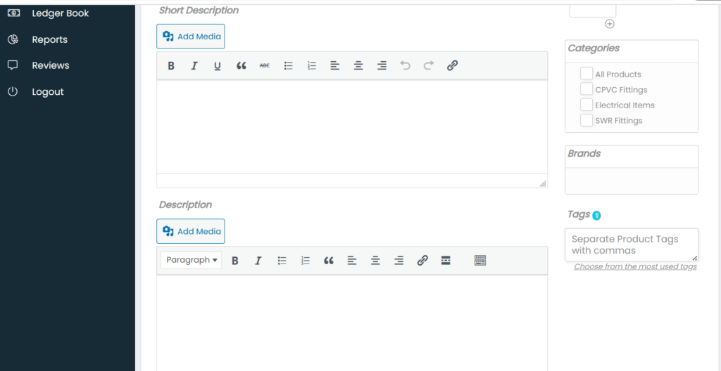 - In Tags add words related to products (Ex: for CPVC pipe add tags like pipe, water pipe, cpvc pipe, etc.,