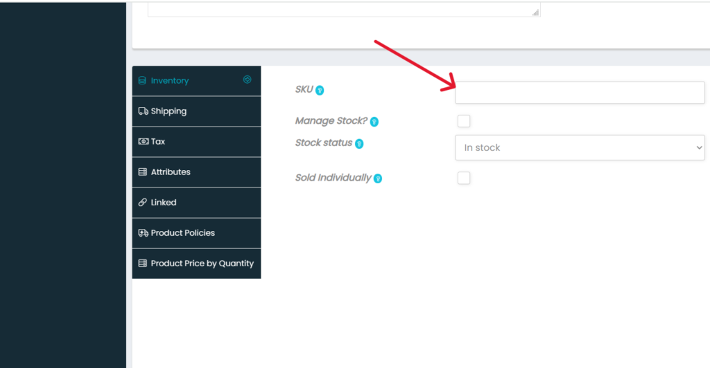 - Add Stock Keeping Unit (SKU) (for ex: cprk001 where cprk indicates ‘cpvc‘ product ‘rk‘ represents your shop name and ‘001‘ is first product). It is just to give unique number to your product, you can maintain whatever you need.