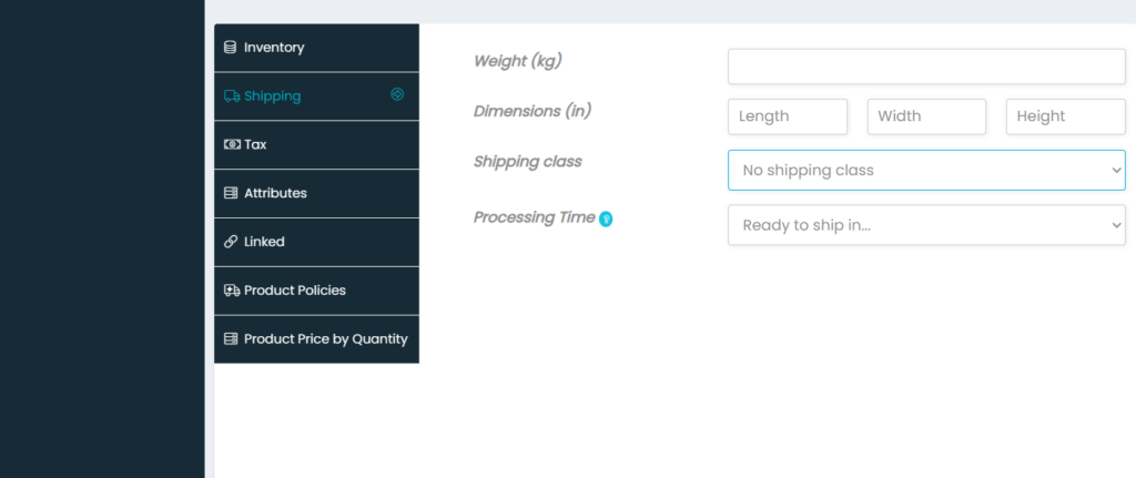 - Just leave the Processing Time as it is “Ready to ship in”.