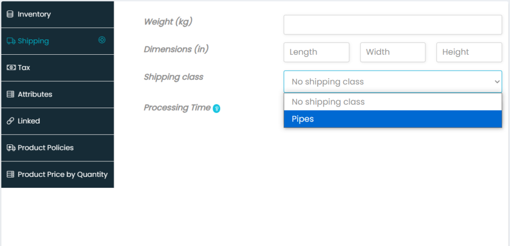 - In Shipping class choose pipes for CPVC Pipes or electric pipes and for fittingschoose cpvc fittings or electric fittings which is in dropdown.