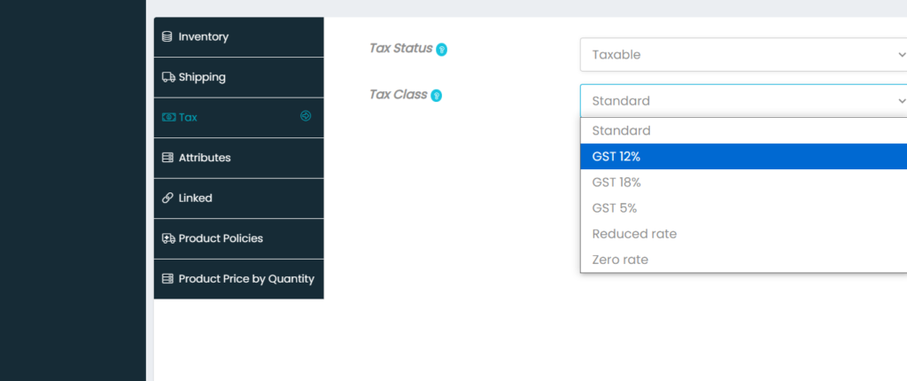 - Tax Class – choose tax class like GST 12%, 18%,etc.,