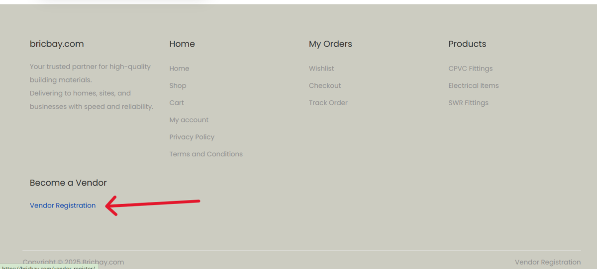Click on the vendor registration