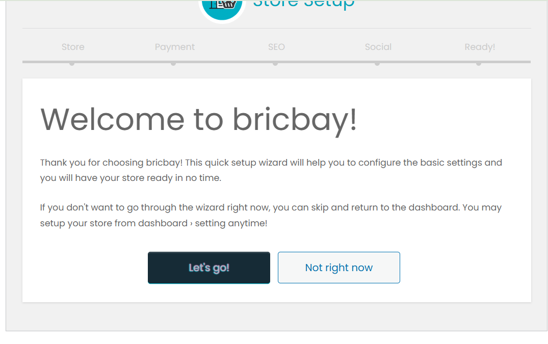 You get to see this page after you register and create a account. Click on Let's go button to setup the shop or you can set it up later from my account page.